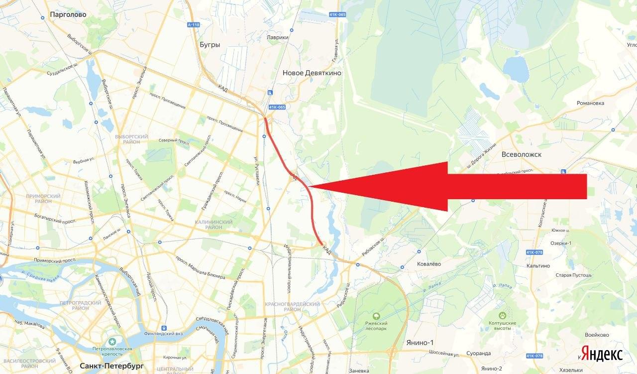 Проезд на КАД между трассой Петербург — Матокса и Шафировским проспектом ограничен до 6 апреля.