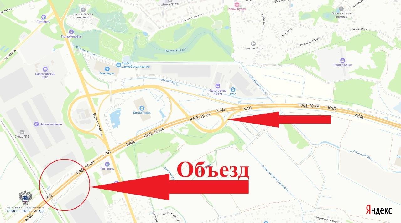 Схема ограничений движения на участке КАД возле Кронштадтского шоссе