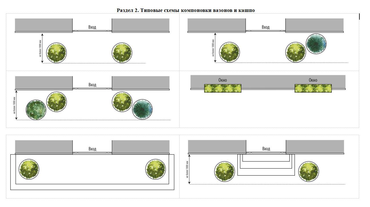 Допускается изменение линейных габаритов не более чем на 30%. Перед входом можно размещать не более двух вазонов с каждой стороны, на расстоянии не дальше 1 метра от стены.