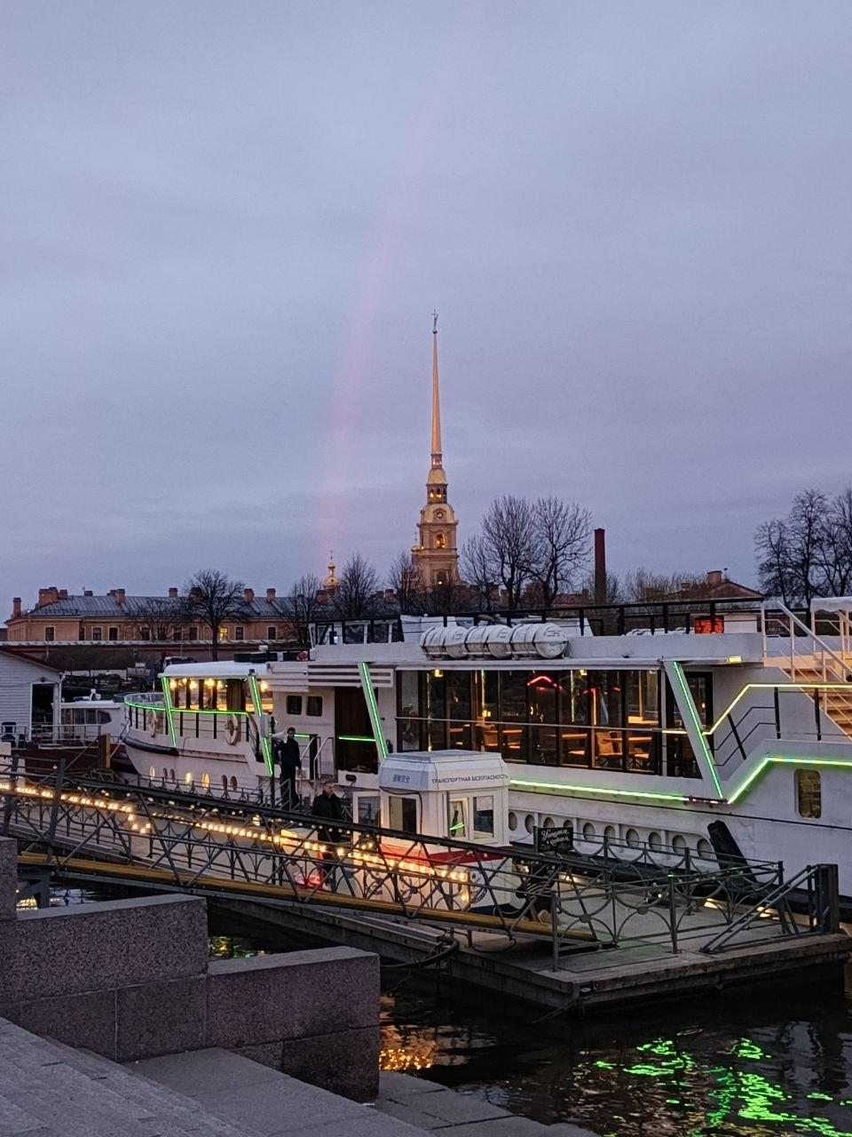 В центре Санкт-Петербурга 15 апреля, ближе к вечеру, можно было увидеть, вероятно, первую весеннюю радугу. На фотографиях заметно, что явление имело форму неполной дуги, которая зрительно простиралась от шпиля Петропавловского собора.