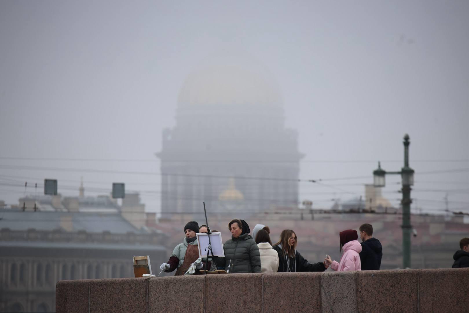 В среду утром в Петербурге установилась пасмурная погода, город скрылся в плотной пелене тумана. Холодные воздушные массы принёс ветер с Финского залива, что стало резким контрастом после недавних тёплых дней. Это явление совпало с днём весеннего равноденствия, когда продолжительность дня сравнялась с ночью.