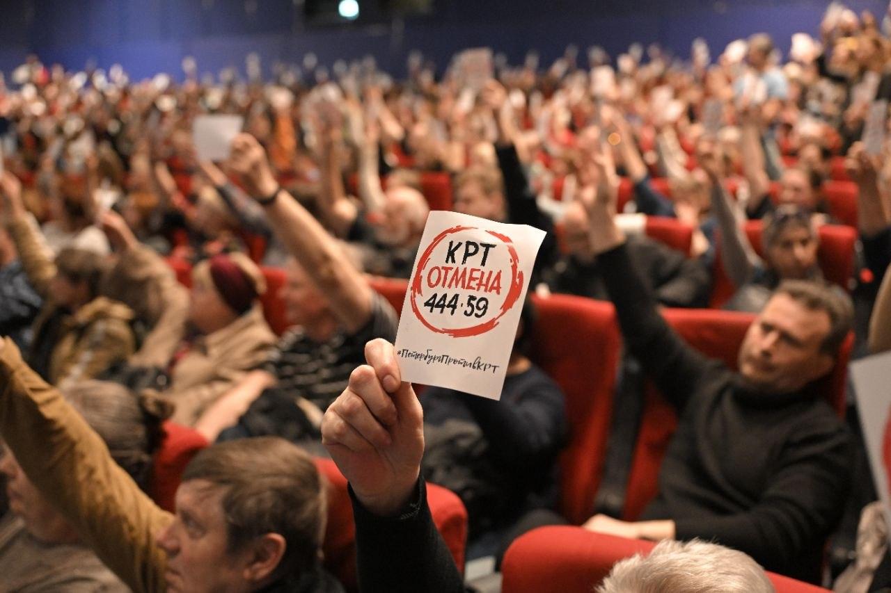 18 апреля в кинотеатре гостиницы «Москва» прошло собрание, организованное партией «Справедливая Россия» и движением противников КРТ, целью которого было обсуждение инициативы референдума об отмене комплексного развития территорий.
