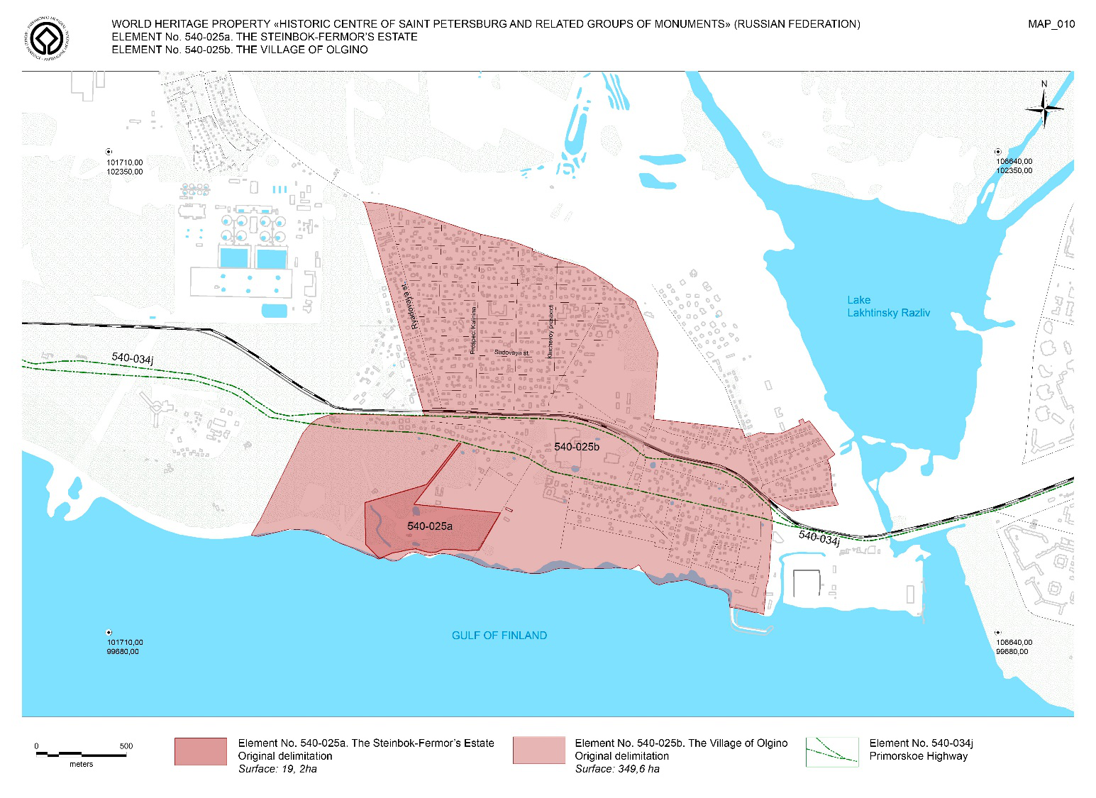 Часть проектируемой территории входит в объект всемирного наследия ЮНЕСКО «Исторический центр Санкт-Петербурга и связанные с ним комплексы памятников» — а именно Северный берег в поселке Ольгино. Однако разработчики отмечают, что федеральное законодательство не регулирует охрану таких объектов, и проект ведется в рамках российских норм. Ранее консультативная миссия ЮНЕСКО посещала Петербург, и городские власти информировали центр всемирного наследия о крупных проектах, включая эти небоскребы, а также ШМСД, Большой Смоленский мост, колокольню Смольного собора и реставрацию Конюшенного ведомства.