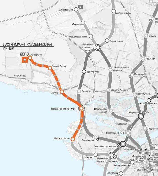 Подземная связь с городом будет обеспечена станцией «Лахта» продолжения оранжевой линии метрополитена. Согласно Генплану, у станции будет три вестибюля: около «Лахта Центра», рядом с новыми небоскребами и с противоположной стороны железной дороги возле Южной улицы. Строительство должно завершиться до 2040 года. Станция войдет в транспортно-пересадочный узел вместе с открытой в 2025 году железнодорожной платформой «Новая Лахта».