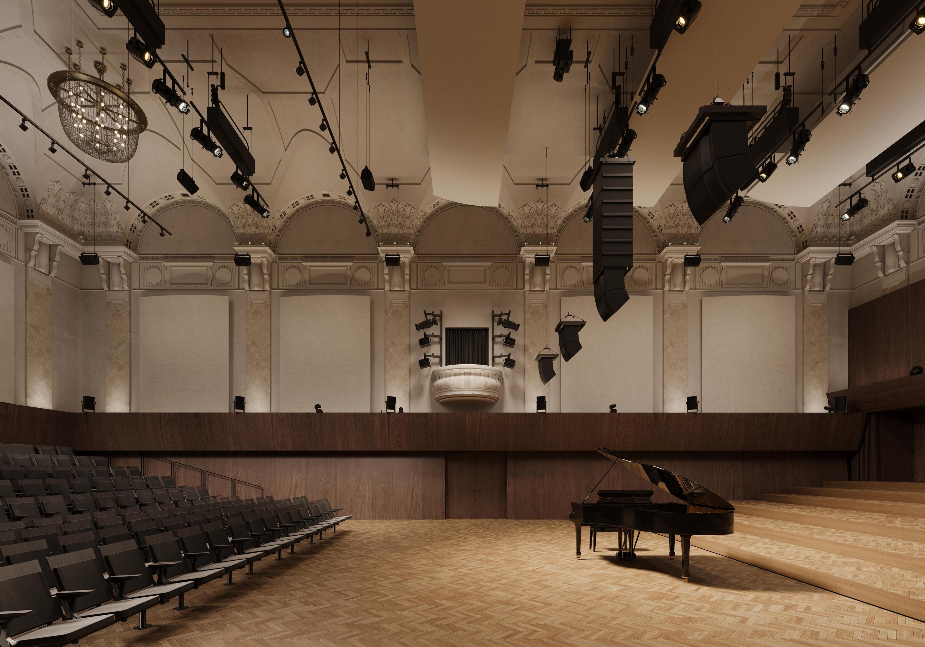 Реставрация учитывает потребности новых резидентов — коллектива musicAeterna. Для них необходимо гибкое пространство, которое можно адаптировать под различные эксперименты.