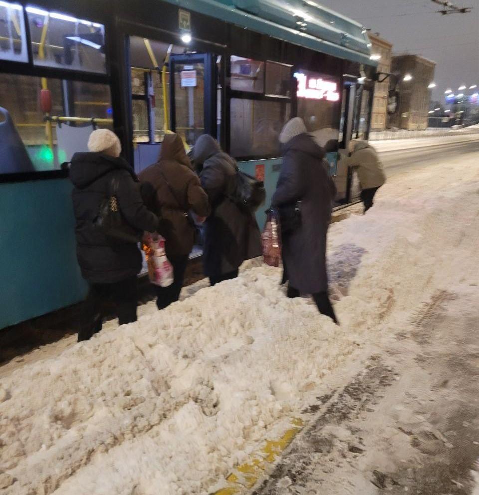 Жители города сообщают о значительных снежных заносах. Несмотря на частичную расчистку тротуаров, снежные валы у обочин создают трудности для посадки и высадки из общественного транспорта.