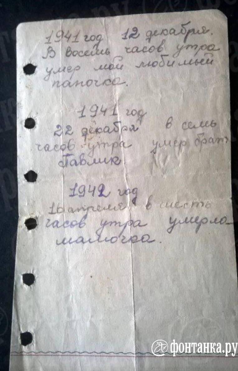 Ленинградка Мария Смирнова в 13 лет вела записку, где отмечала даты смерти родных во время блокады. Её сын Виктор сохранил этот документ и поделился им.