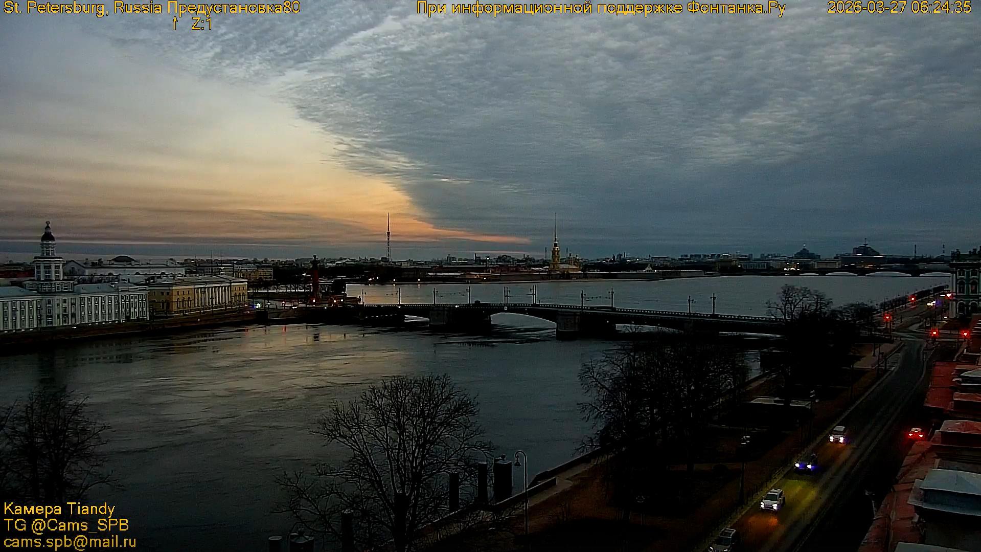 Утро 27 марта в Санкт-Петербурге началось с теплой погоды. По данным Северо-Западного управления по гидрометеорологии и мониторингу окружающей среды, в течение дня ожидается переменная облачность без существенных осадков.