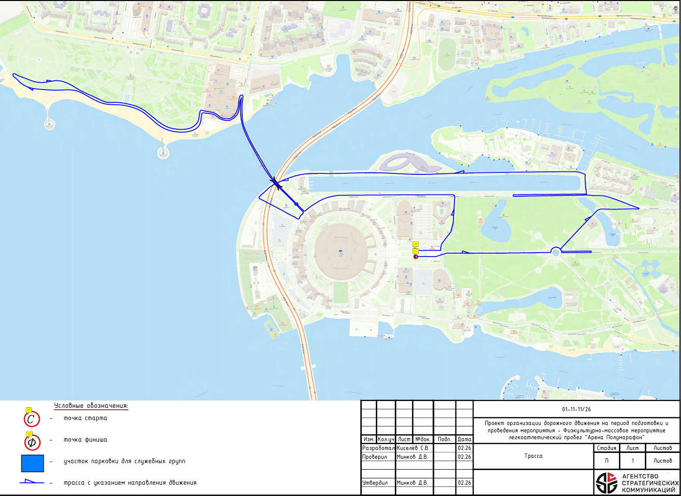19 апреля на Крестовском острове состоится легкоатлетический пробег «Арена полумарафон». С 07:00 до 14:00 движение транспорта будет перекрыто на следующих улицах в районе «Газпром Арены»: