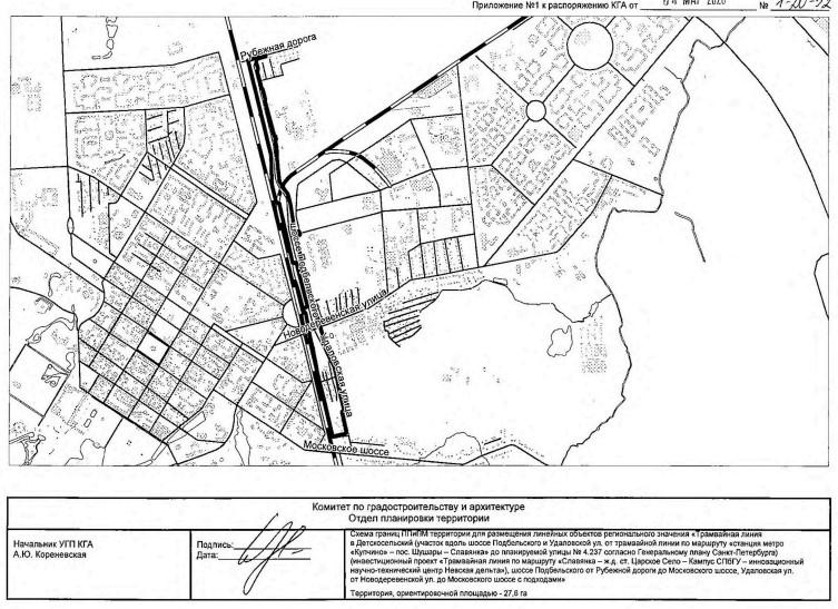 Строительство этого участка является частью инвестиционного проекта «Трамвайная линия по маршруту Славянка — железнодорожная станция Царское Село — Кампус СПбГУ — инновационный научно-технический центр Невская дельта». Ранее для планировки отрезка вдоль Ям-Ижорского шоссе было выпущено аналогичное распоряжение.