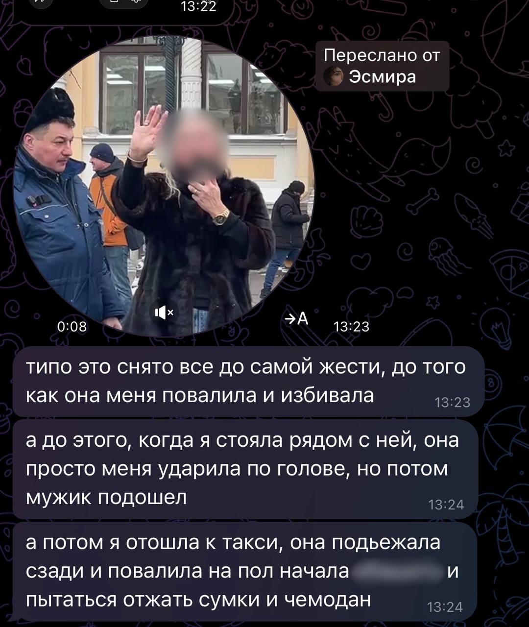 Блогер Эльдар Джарахов рассказал, что его сестра Эсмира подверглась нападению возле Московского вокзала в Санкт-Петербурге. По его словам, женщина в шубе пыталась силой отобрать её чемоданы.