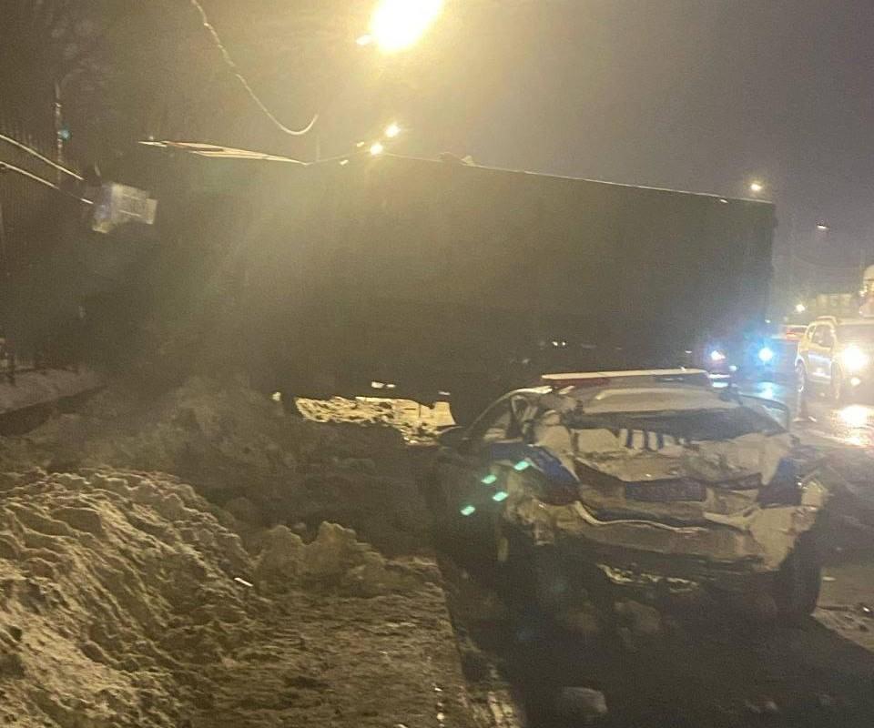 В Санкт-Петербурге на Пулковском шоссе произошло дорожно-транспортное происшествие, в результате которого пострадал полицейский. Инцидент случился утром 17 февраля, когда мусоровоз врезался в служебный автомобиль ГИБДД, прибывший для оформления предыдущей аварии.