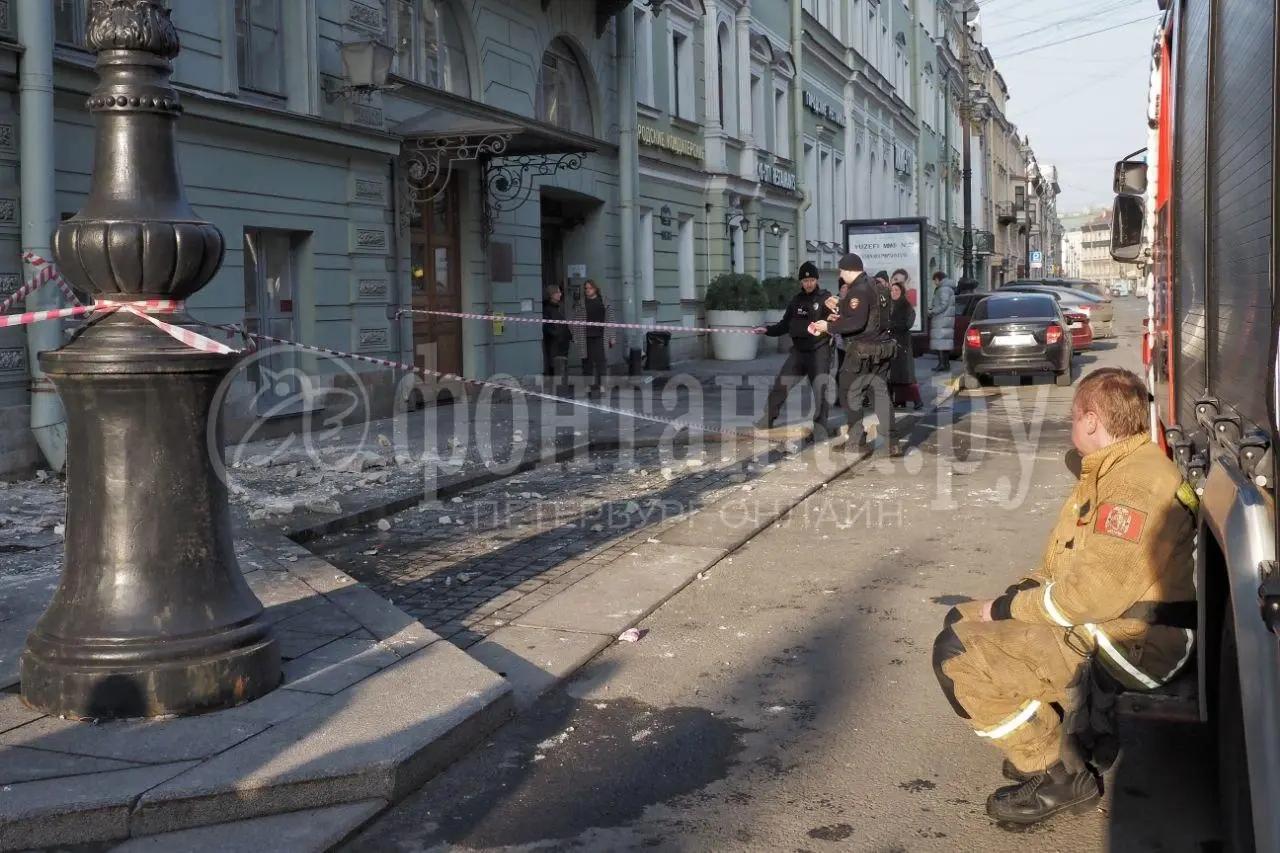 Согласно данным администрации Адмиралтейского района, управляющая компания «Жилкомсервис №2 Центрального района» за два часа до происшествия при плановом осмотре обнаружила незначительное отслоение штукатурки. По заявлению властей, опасный участок был огорожен сигнальной лентой, запрещающей проход пешеходов.