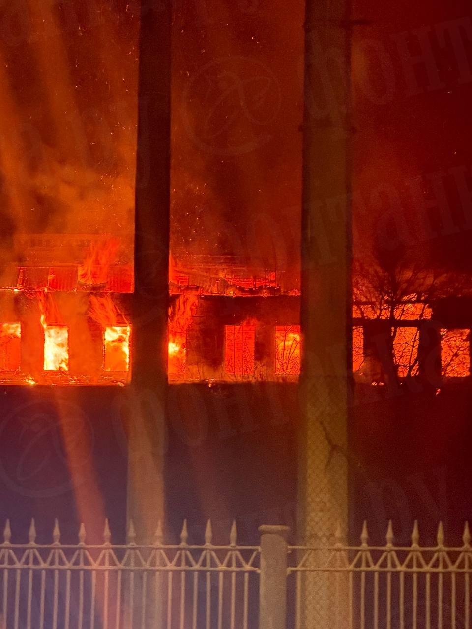 По свидетельствам очевидцев, пламя полностью охватило строение и вырывалось из окон. В Главном управлении МЧС по Петербургу подтвердили, что пожар происходит по адресу: проспект Обуховской Обороны, 42. Точная площадь горения пока устанавливается, информации о пострадавших нет.
