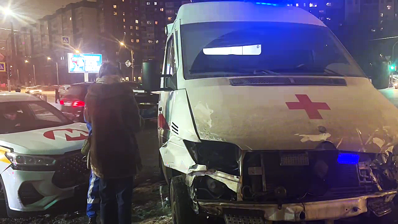 Вечером во вторник, 27 января, на перекрестке проспектов Королева и Сизова в Санкт-Петербурге произошло дорожно-транспортное происшествие с участием машины скорой помощи.