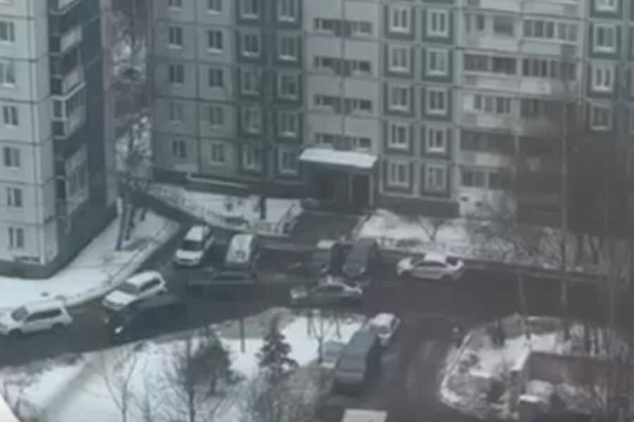 По свидетельству одной из местных жительниц, события разворачивались в промежутке между 11 и 12 часами дня. На опубликованных кадрах видно, как по двору уезжает черный автомобиль, за которым бегут сотрудники полиции.