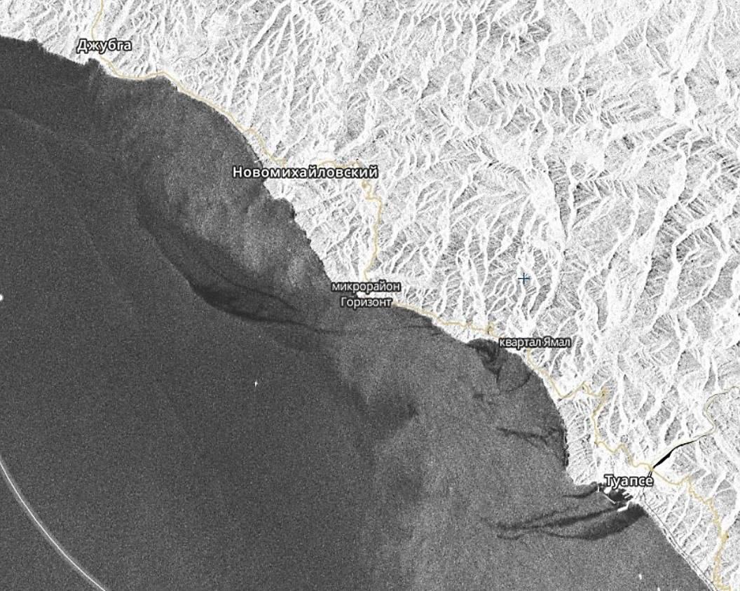 Спутниковый снимок района Туапсе от 25 апреля, видны пятна загрязнения