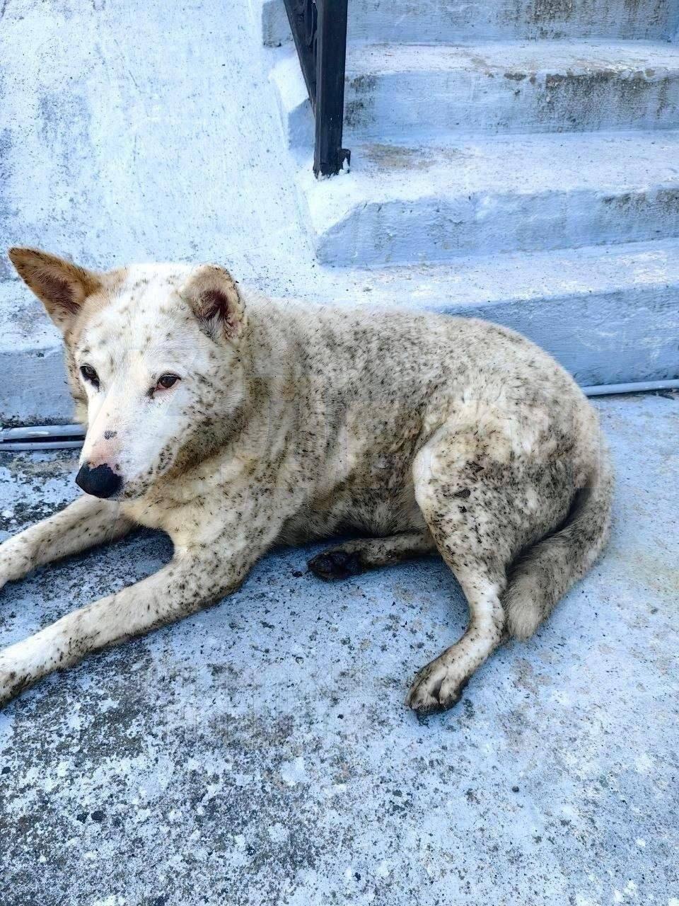 Собака, испачканная «нефтяным дождем» в Туапсе