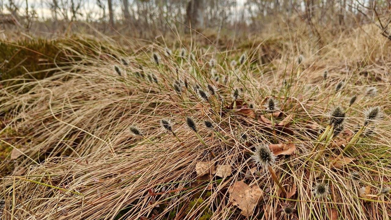 Болотный первоцвет пушица влагалищная начала цвести в Ленинградской области в конце марта. Растение имеет большое экологическое значение для болотных биоценозов.