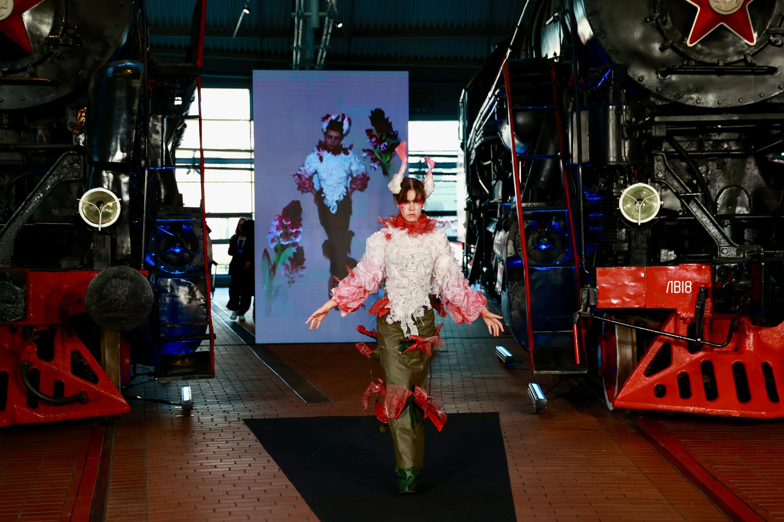 Впервые отборочный этап направления «Мода» фестиваля «Студенческая весна в Санкт-Петербурге» провели в Музее железных дорог России. Индустриальные декорации — рельсы, металлические конструкции и массивные поезда — сформировали необычный фон для студенческого творчества.