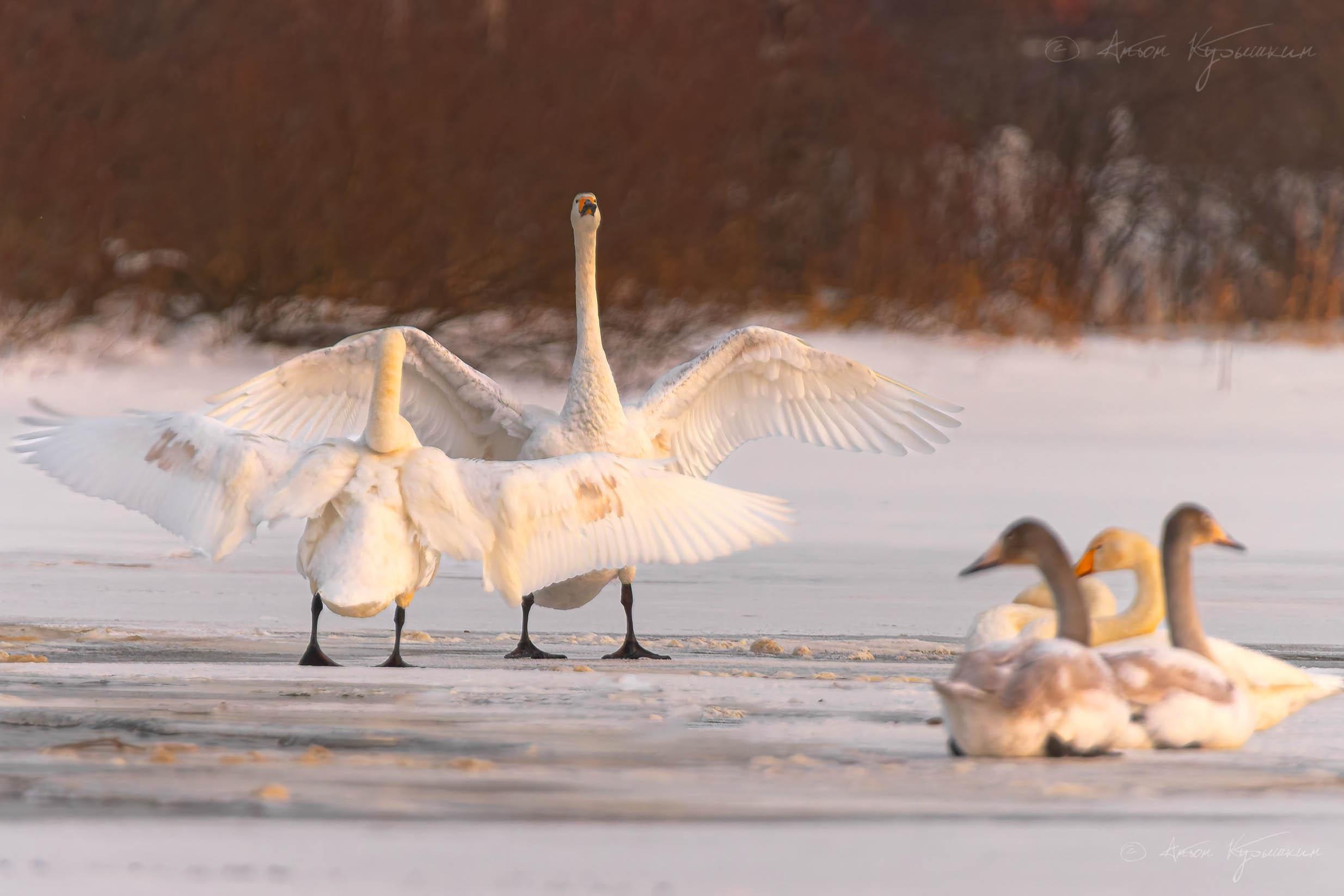 Ещё один вид, изменивший привычке к перелётам, — лебедь-кликун. На акватории Вуоксы эти краснокнижные птицы, включая местный молодняк, остаются на зимовку уже несколько лет подряд. Недавно один из лебедей показал лапу фотографу Антону Кубышкину.