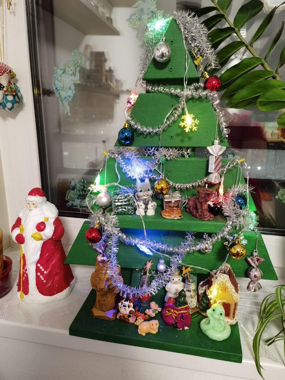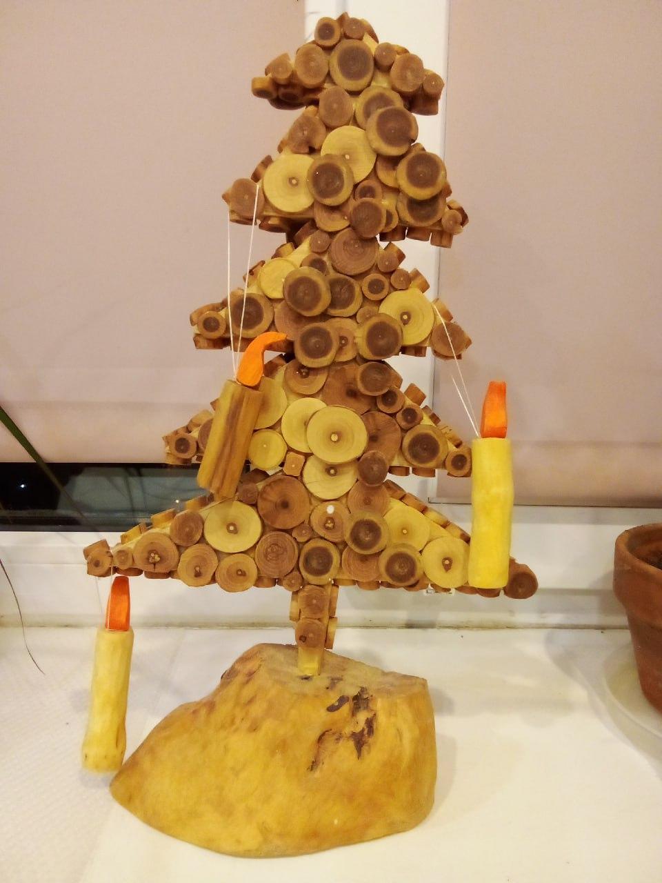 - деревянная ель, которую сделал девятилетний мальчик.