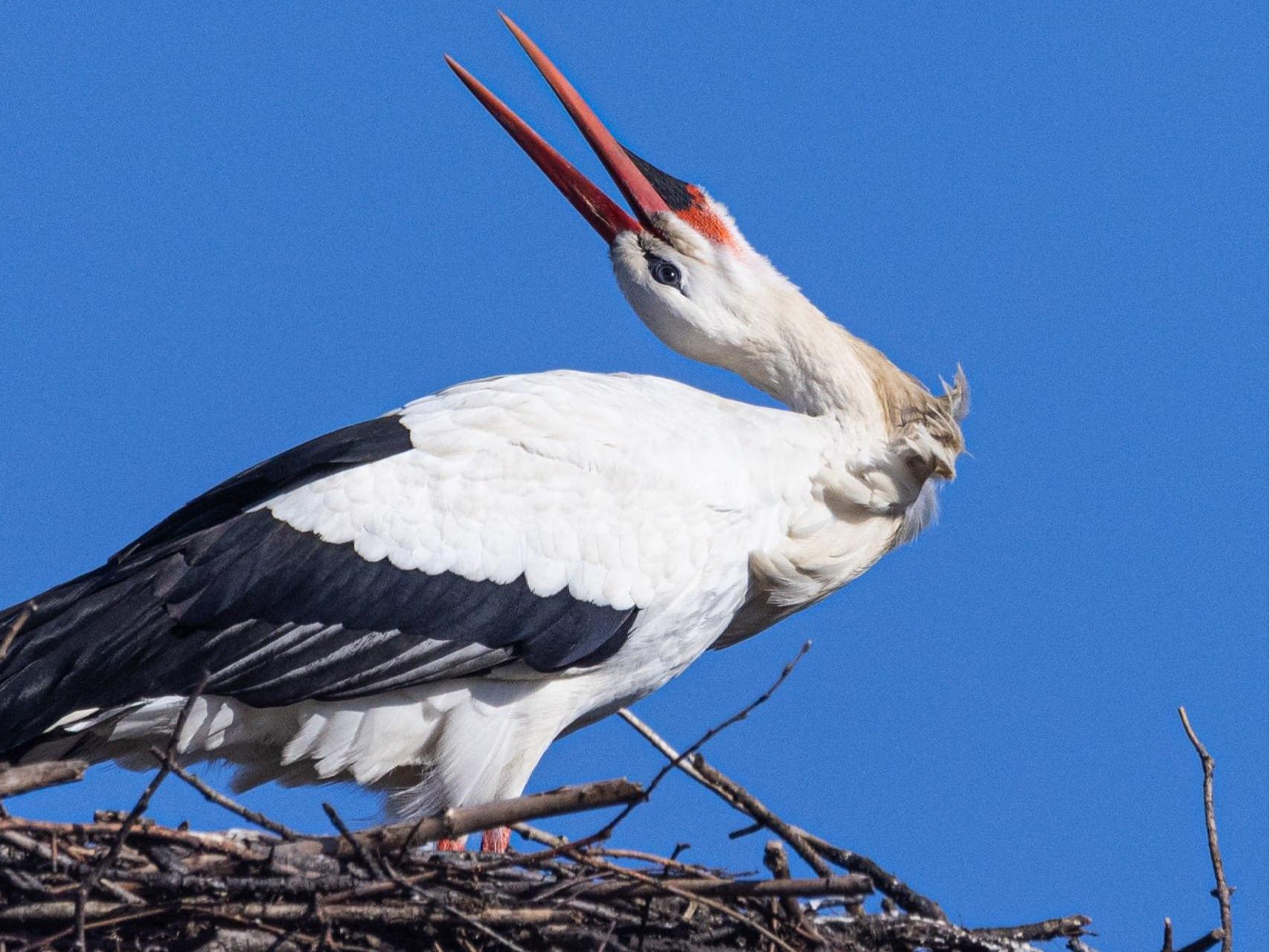 С возвращением с зимовки у аистов начинается брачный сезон. Первую птицу этого года заметили в Ленинградской области.