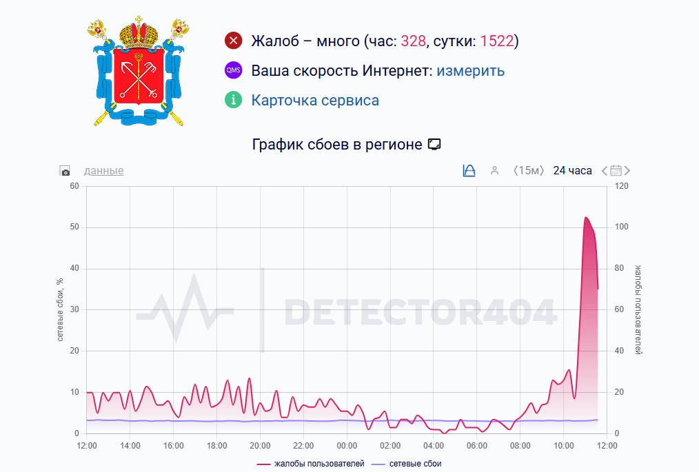Утром 26 января в центральной части Санкт-Петербурга зафиксирован масштабный сбой в работе мобильного интернета. Согласно данным сервиса Downdetector, только за первый час было получено более 300 сообщений о проблемах, а общее количество жалоб за день превысило 1500. На отсутствие связи жаловались пользователи всех крупных сотовых операторов.