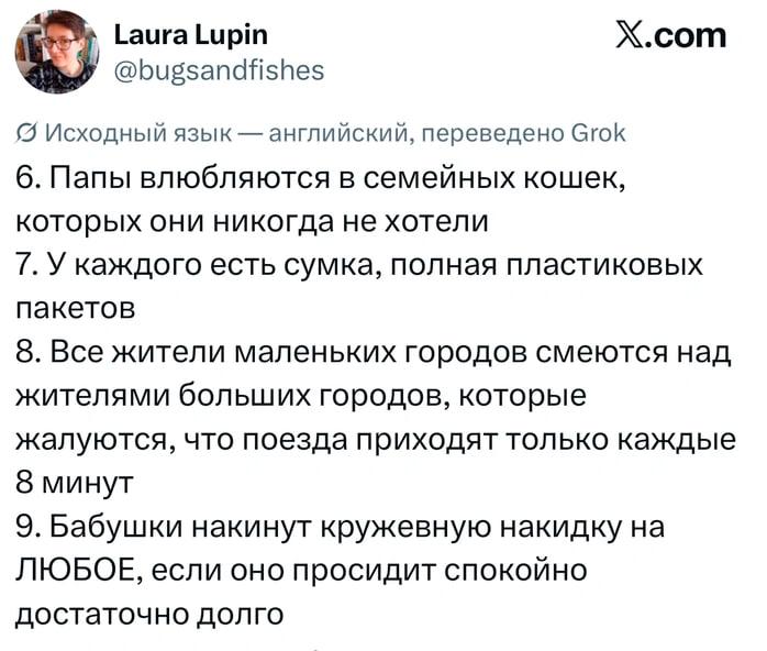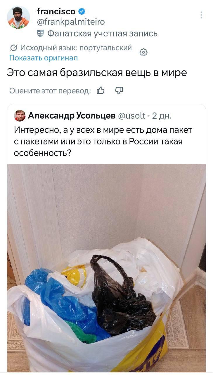 Автоматический перевод в соцсети X привел к глобальному обсуждению бытовых привычек. Пользователи из разных стран обнаружили, что у них много общего, от пакетов с пакетами до тюремных загадок.