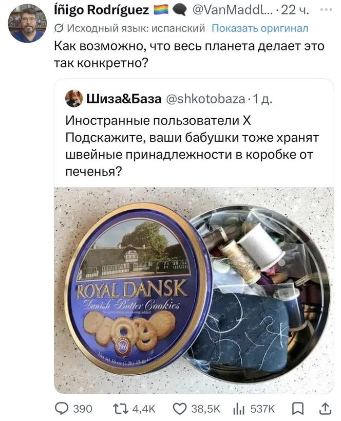 Бабушки по всему миру хранят швейные наборы в жестяных коробках из-под печенья.