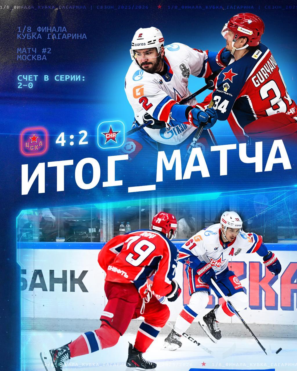 Второй матч серии 1/8 финала Кубка Гагарина между ЦСКА и СКА прошел в Москве и завершился победой хозяев со счетом 4:2. Эта победа позволила армейцам повести в серии со счетом 2:0.