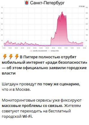 Во вторник, 17 марта, в телеграм-каналах и социальных сетях стали распространяться утверждения о полном отключении мобильного интернета в Санкт-Петербурге для обеспечения безопасности. Однако эти сообщения оказались недостоверными.