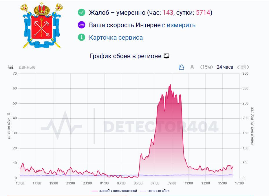 Мобильный интернет начал восстанавливаться у петербуржцев примерно в полдень. Согласно данным портала DownDetector, количество жалоб на работу сети резко сократилось после 11 часов утра и к настоящему времени достигло минимальных значений.